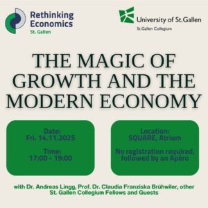 Rethinking Economics and the St. Gallen Collegium invite you to an evening of reflection on economic growth, and it’s spell on the human imagination. We will explore the ideas and narratives that make growth appear both inevitable and desirable, and how these shape our understanding of freedom and political orders.